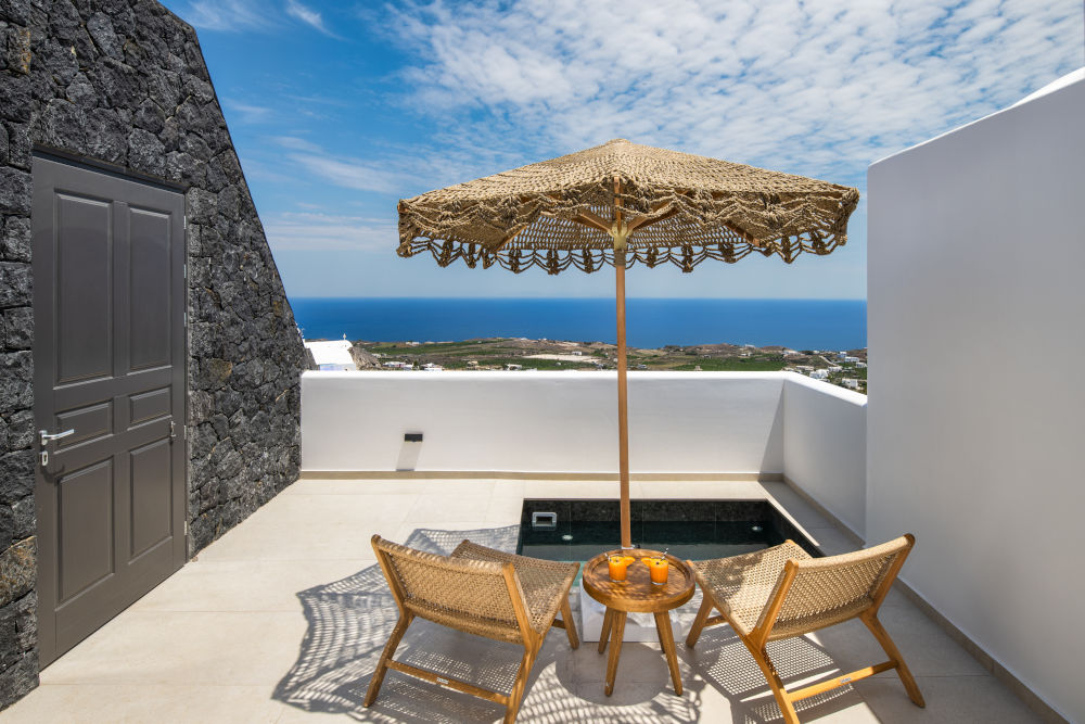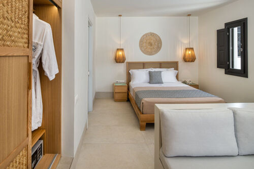 A very nice suite ideal for couples or friends with a queen bed, living area with a comfortable sofa, big private balcony with a hot tub, offering total privacy and amazing sea views on the east side of the island and the sunrise. The size of the Superior Site is approximately 40 square meters